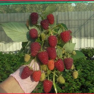 Ягоды конусовидной формы имеют сочную и плотную мякоть со сладким вкусом и ярким малиновым ароматом. Средний вес одной ягоды составляет 6 г, а самая крупная может вырасти до 12 г. Плоды легко снимаются с плодоножки, отличаются хорошей транспортабельностью, в течение 3-4-х дней не теряют форму и не текут. Они обладают абсолютной универсальностью, их можно использовать как для употребления в свежем виде, так и для различных десертов и заготовок.